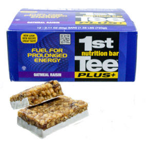 As for flavors, five bar varieties are available. The five are 1st Tee Dark Chocolate Caramel High Protein, 1st Tee Plus+ Oatmeal Raisin, 1st Tee Plus+ Chocolate Peanut, 10th Tee Plus+ Peanut Honey and 10th Tee Plus+ Chocolate Peanut Caramel. Note that “Plus+” denotes bars that have supplements unique to golf.